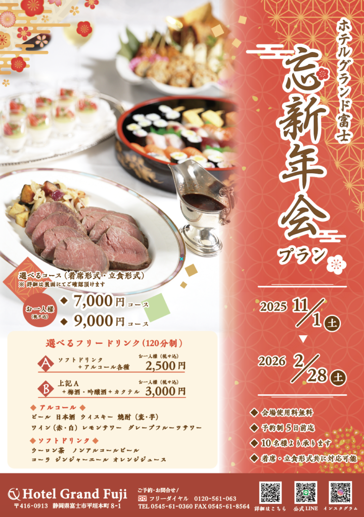 忘年会・新年会などのご宴席でご使用頂ける、期間限定宴会プランをご案内いたします