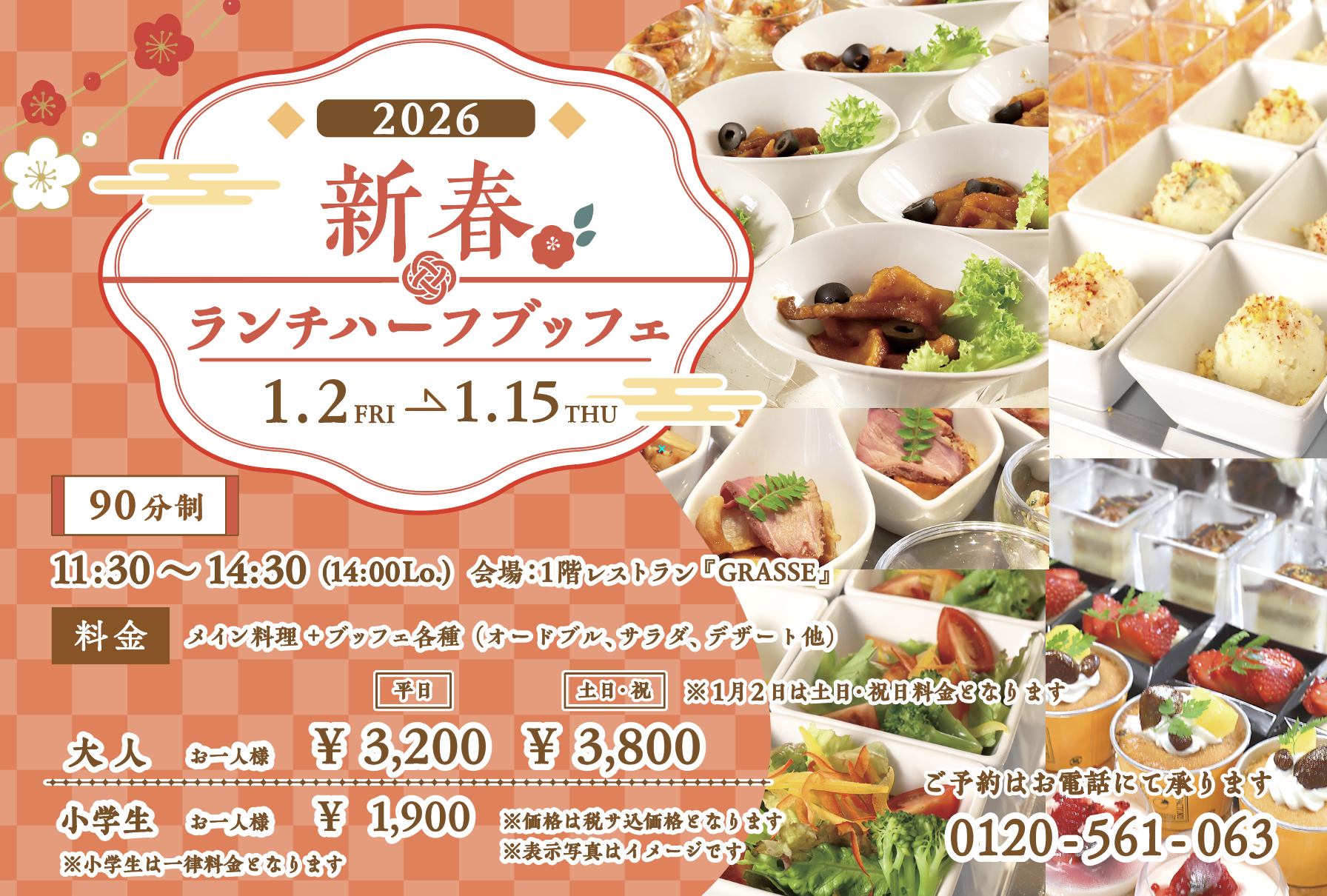 ホテルグランド富士 1階レストラン「GRASSE」にて期間限定「新春ランチハーフブッフェ」を開催いたします。